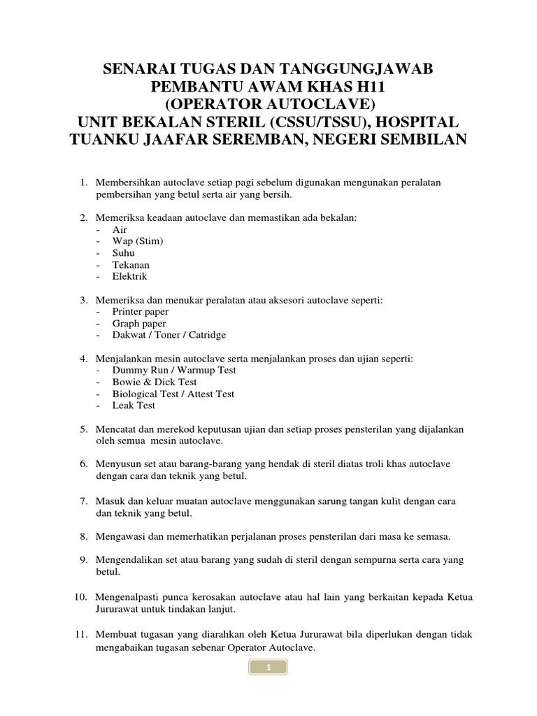 Senarai Tugas Dan Tanggungjawab Pembantu Awam Khas H11 Pdf